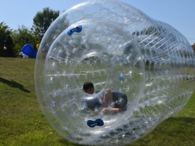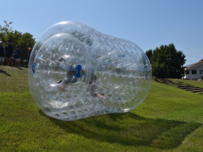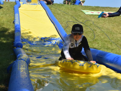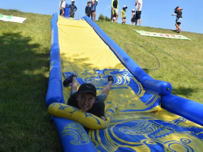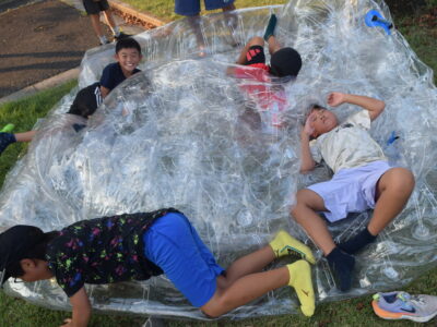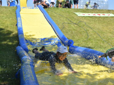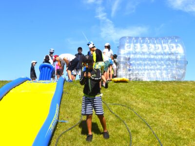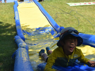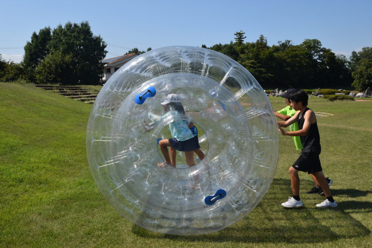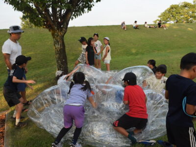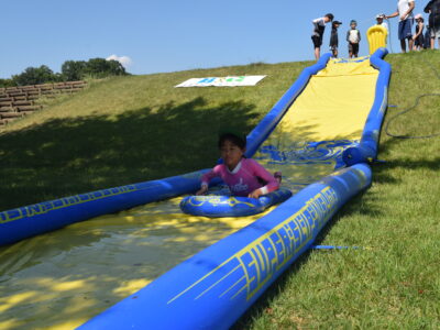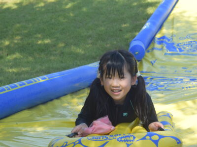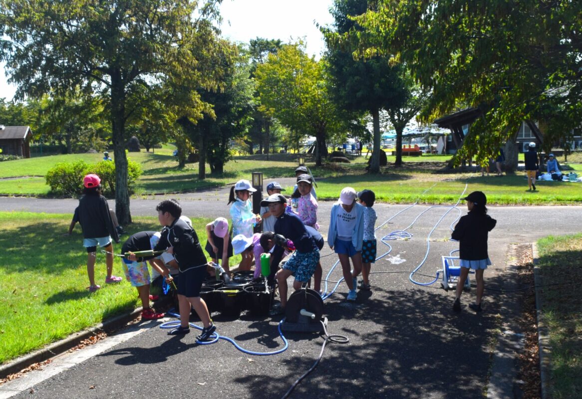 午後はウォータースライダーに水鉄砲、ウォーターバルーンを使い思い切り遊んでいました。晴天にめぐまれたので、気温がぐんぐん上がり熱中症を心配しましたが、こまめな水分補給を呼び掛ける対策を行い、なんとか無事にキャンプができました。