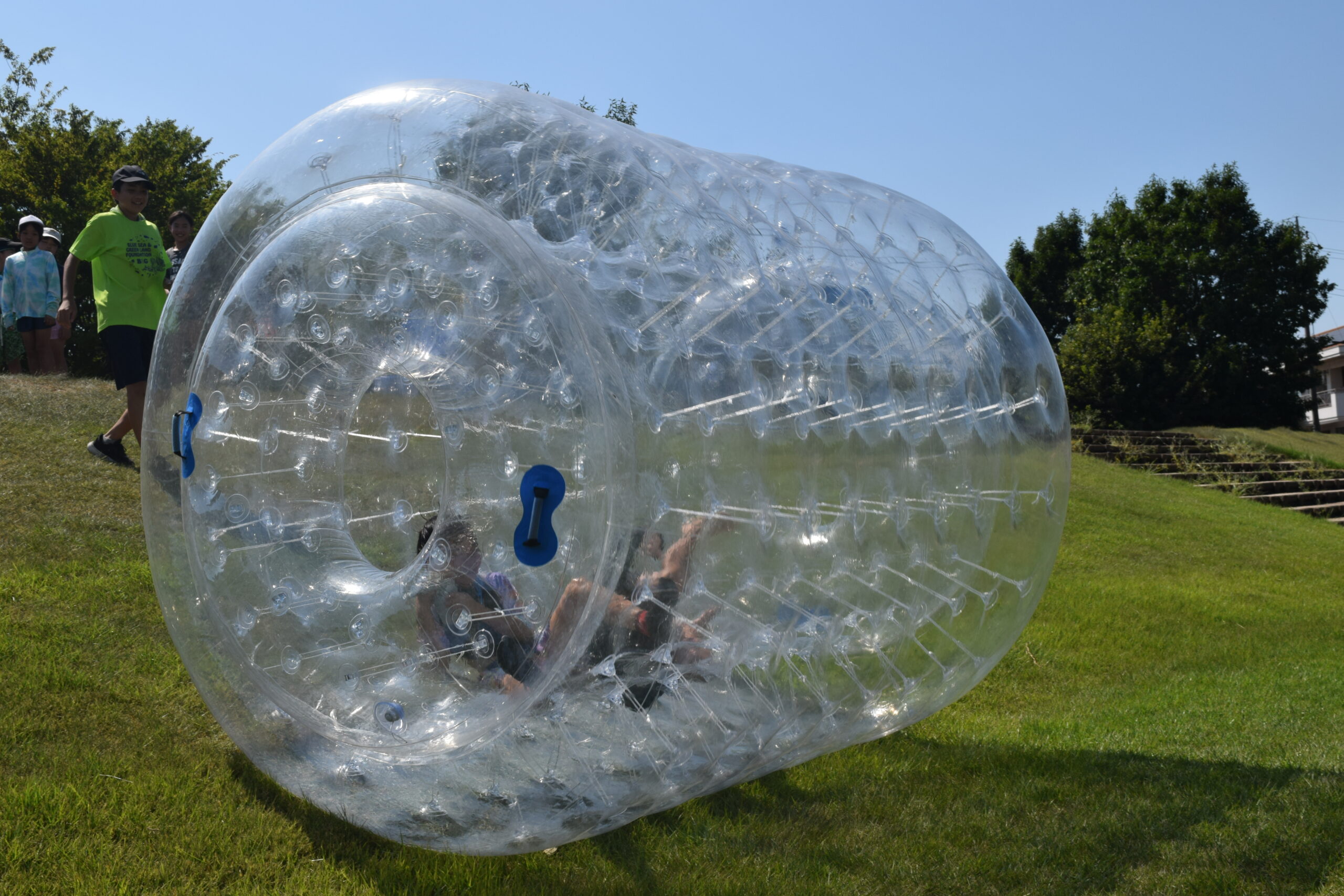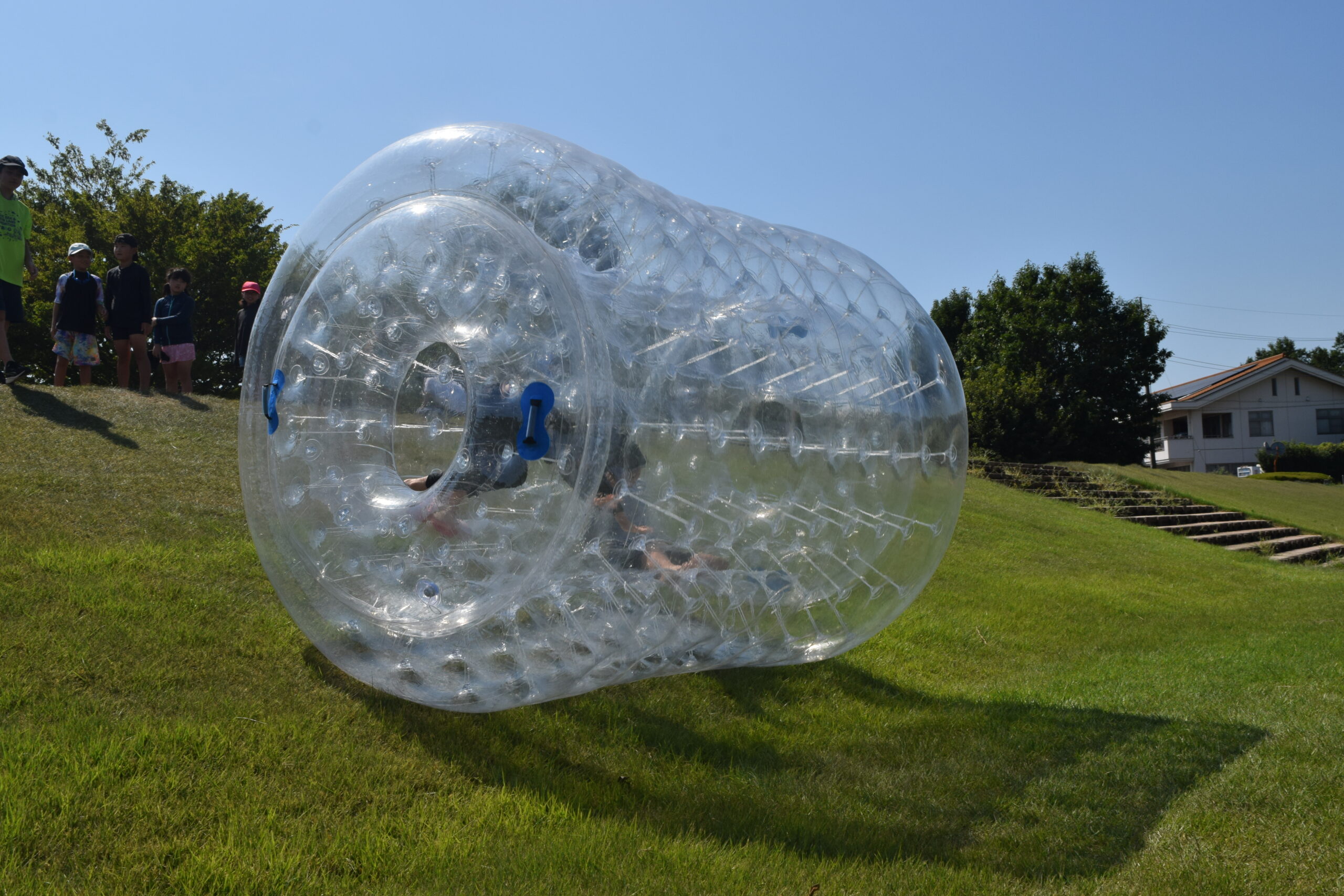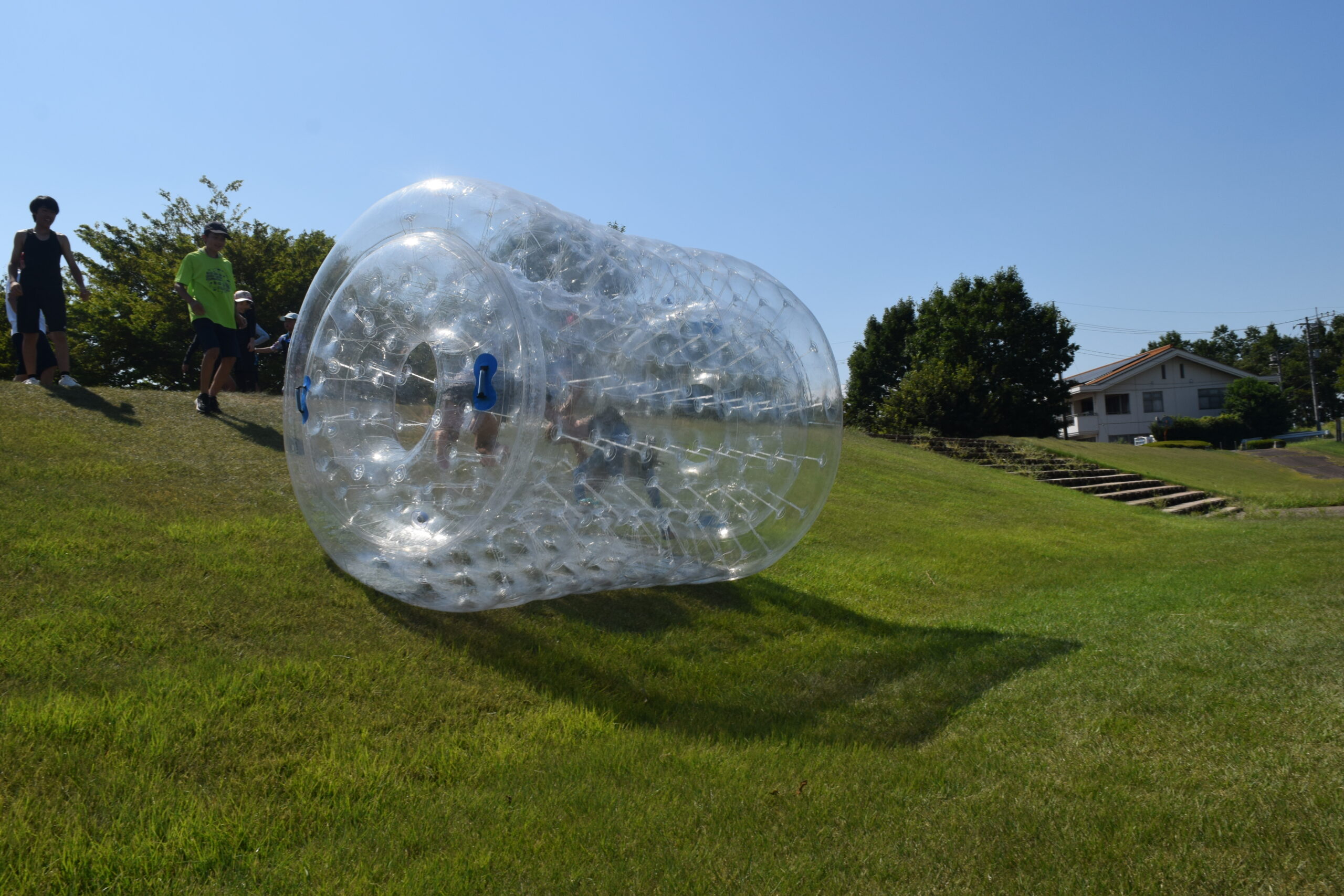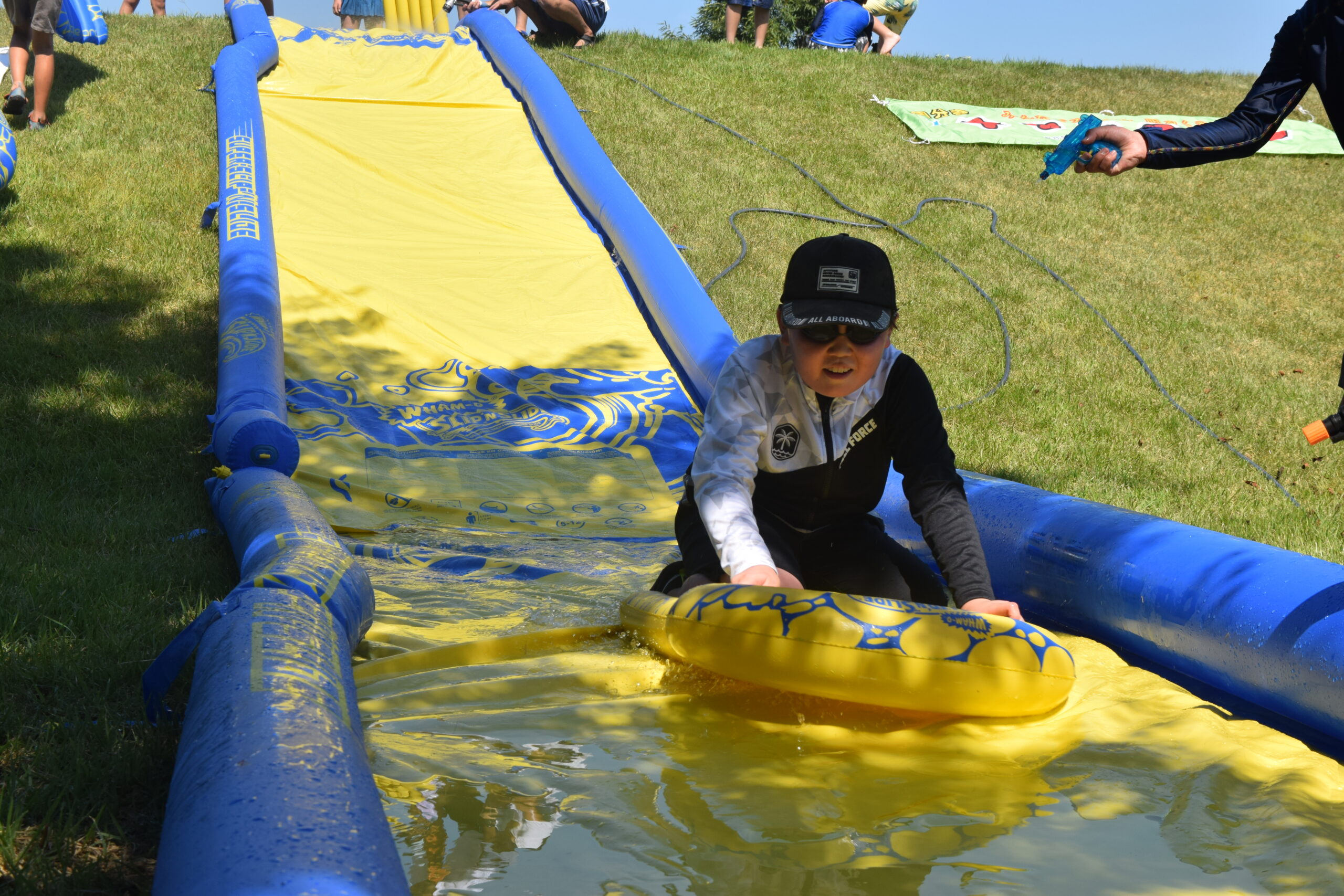午後はウォータースライダーに水鉄砲、ウォーターバルーンを使い思い切り遊んでいました。晴天にめぐまれたので、気温がぐんぐん上がり熱中症を心配しましたが、こまめな水分補給を呼び掛ける対策を行い、なんとか無事にキャンプができました。