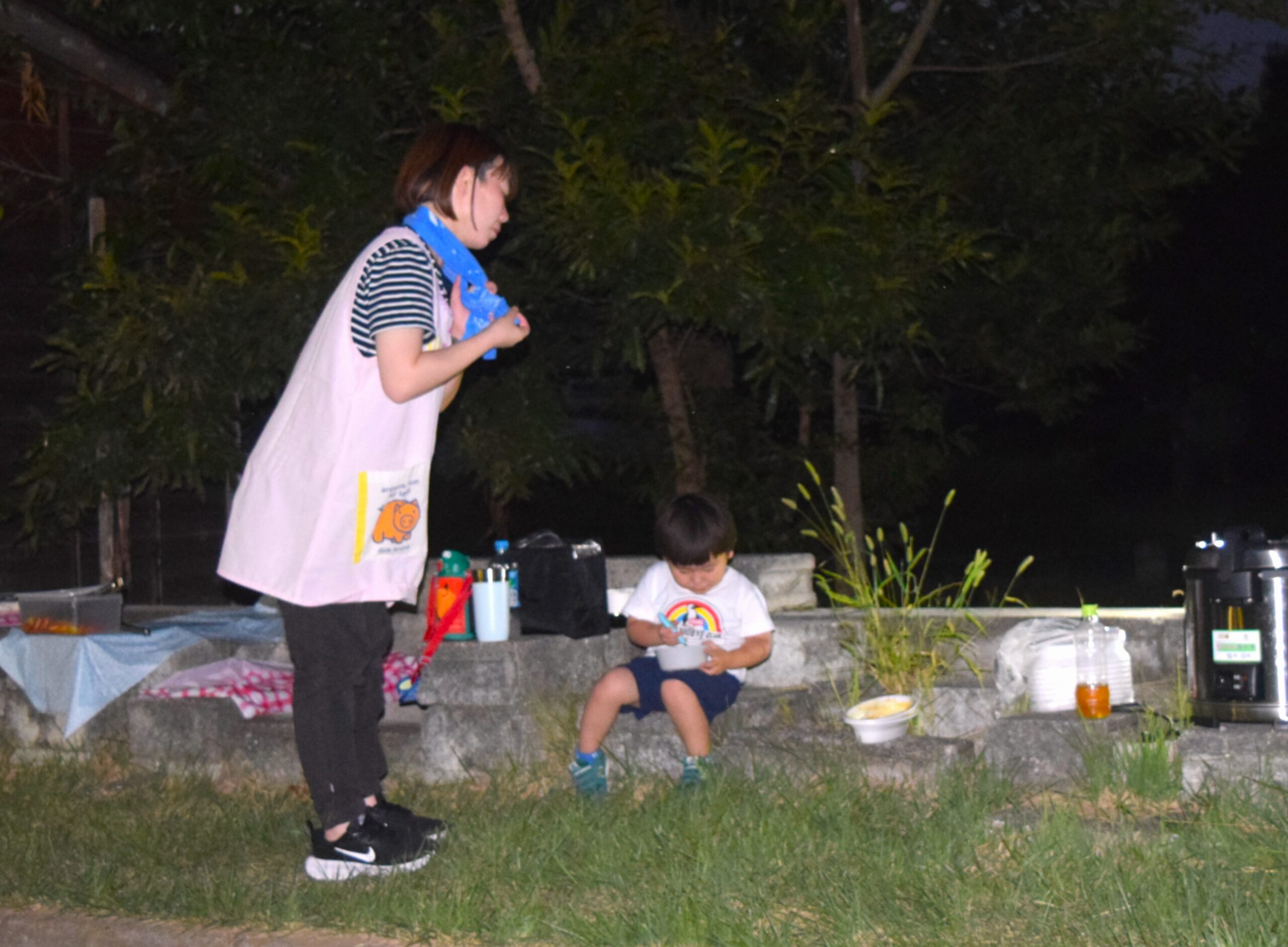 このキャンプ事業は毎年お泊りですが、暑さの影響で今年は日帰りの事業としたので、夕飯を食べたところで解散となりました。