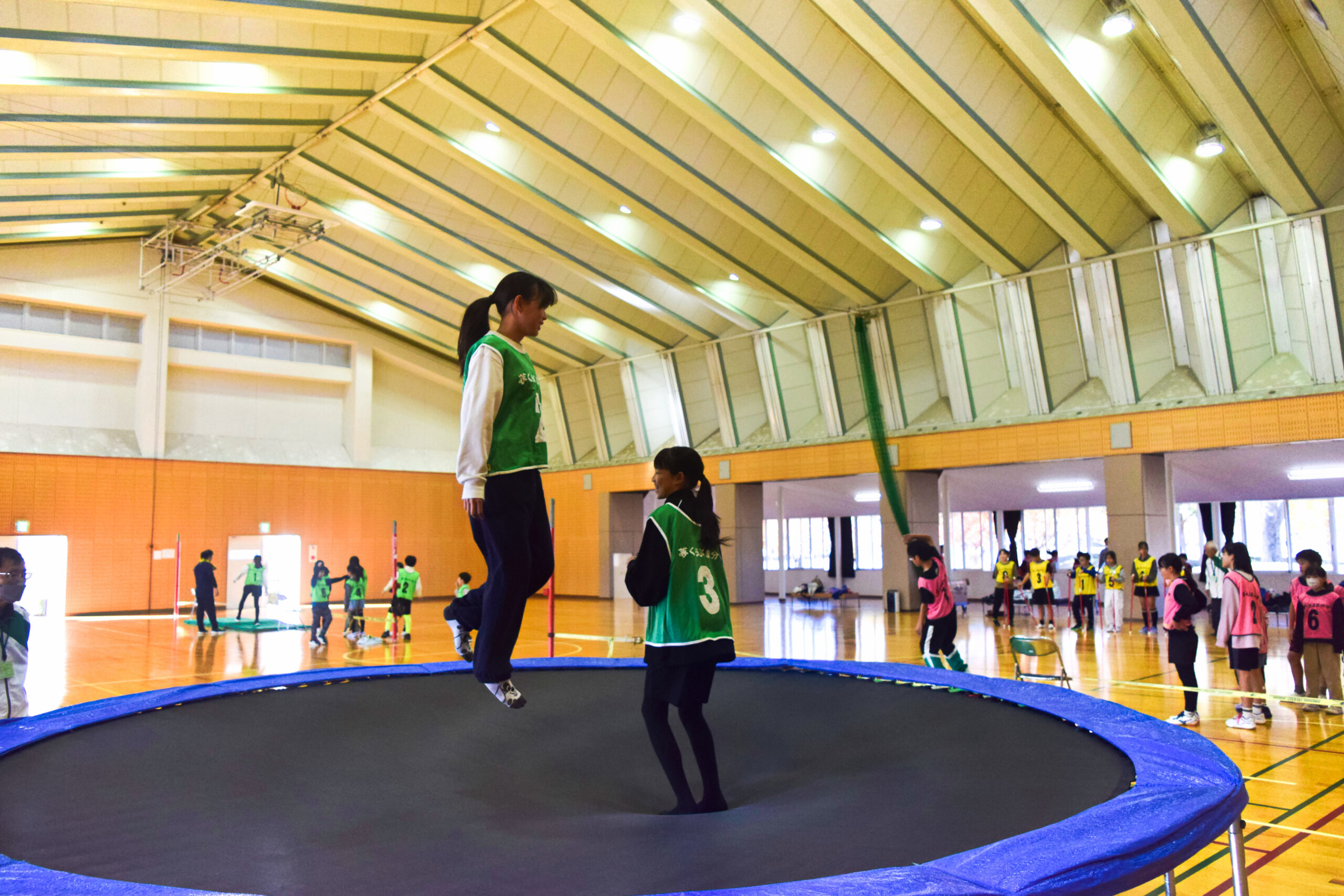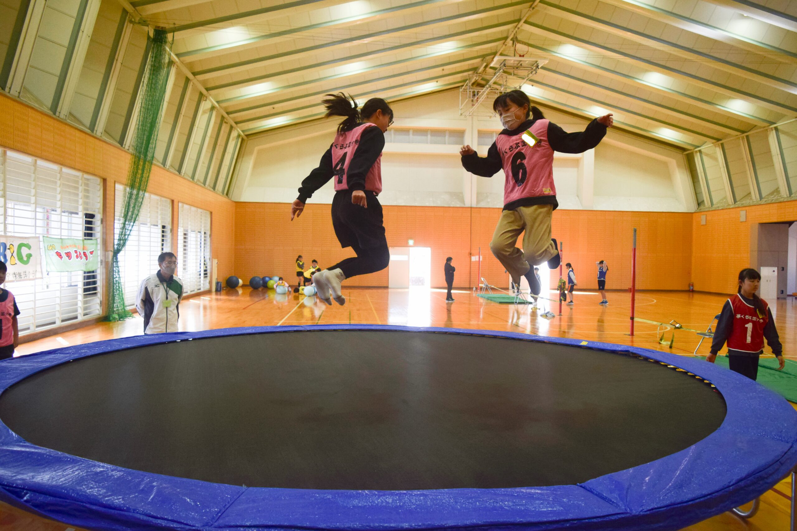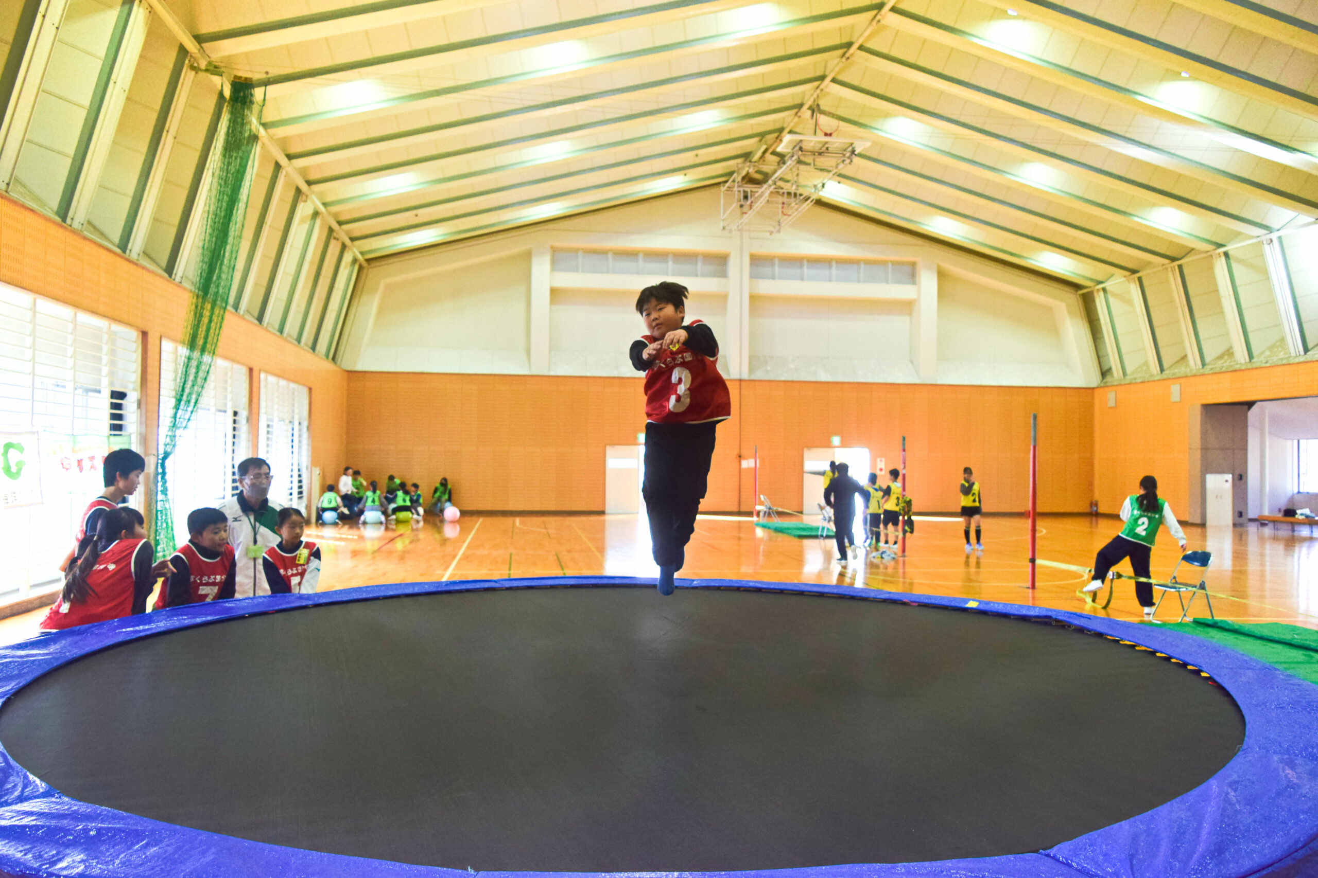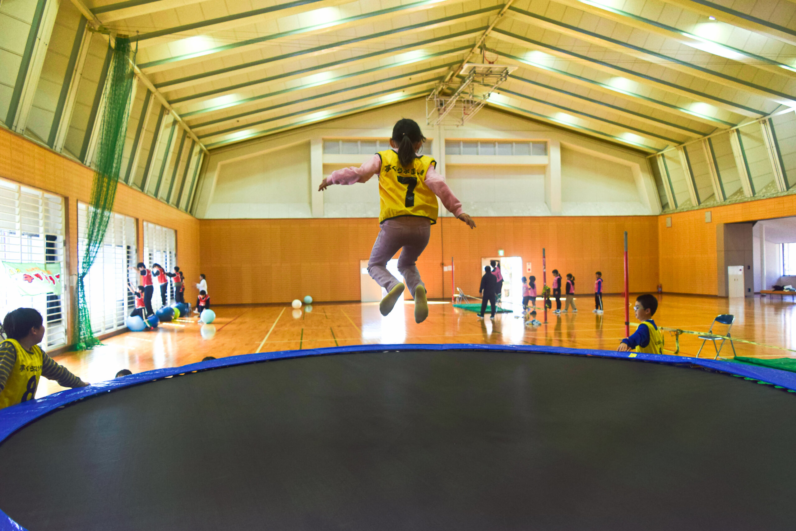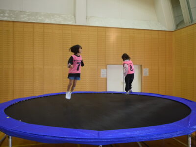 バランスボールにジャンピング、スナックライン、トランポリンを各15分ずつ